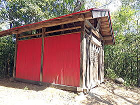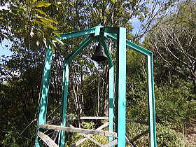 わずかに進むと鉄骨の枠に吊るされた「鐘」があり、上野原市長と記されている。熊除けを兼ねて鳴らすものの、この山域に人も鳥獣の気配もない。緩く下り、登り返すと東屋のある530m余りの高み。ここが八重山というのだろう。