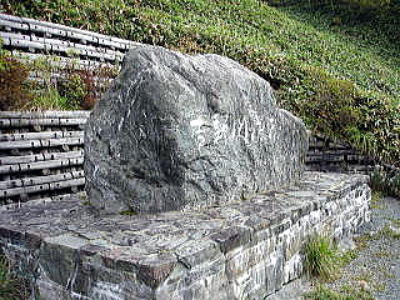 原の中の水平な道を辿って駐車場に戻り、わずかな道のりを車に乗り、「吉野川源流碑」の前の路肩に駐車をした。車道から木段を10mほど登ると立派な石碑があるが、残念ながら最初の一滴はみられない。それもそのはず、ここは稜線から20mしか離れていないのだから。
